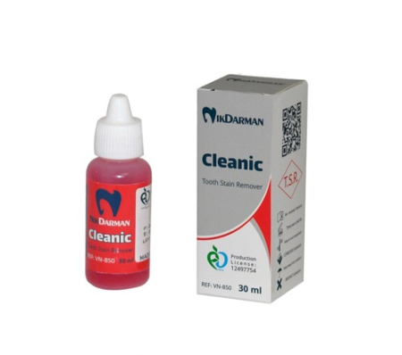 محلول لکه بر دندان Cleanic (T.S.R) , محلول اسیدی جهت از بین بردن لکه ها و بدرنگی های دندان می باشد.