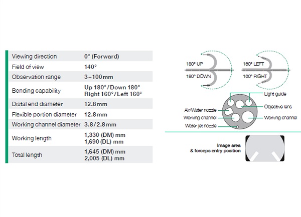 کولونوسکوپ درمانی دبل چنل مدل EC-۵۳۰DL با دو کانال کار ۳,۸mm و ۲.۸mm به همراه واتر جت امکان انجام کلیه پروسیجرهای درمانی که نیاز به عبور بیش از یک اکسسوری دارد را فراهم میکند.