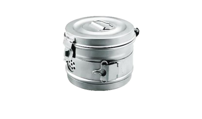 • ظرف فلزی (معمولاً استیل ضدزنگ) درب‌دار و قابل قفل شدن