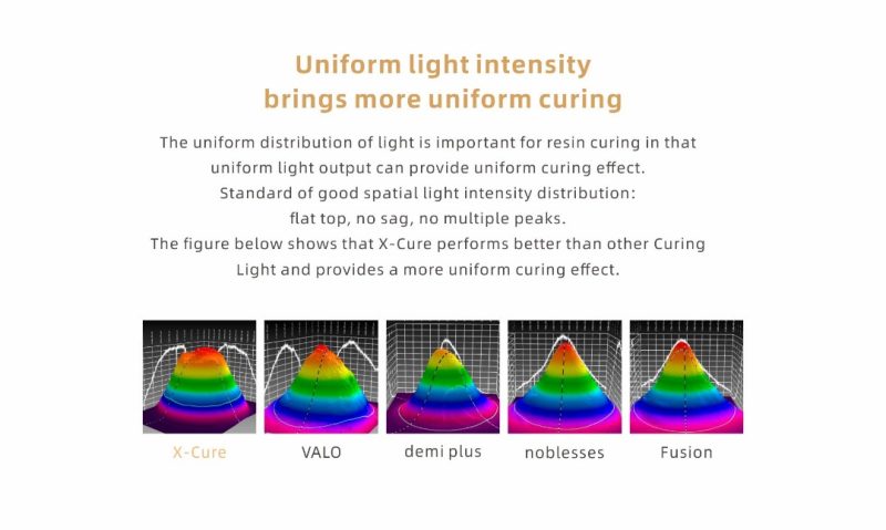 صفحه نمایش رنگی OLED نیز به کارایی این دستگاه افزوده است. این لایت کیور عمل کیور کردن را طی مدت زمان 3 ثانیه و با عمق 3 میلیمتر انجام میدهد.